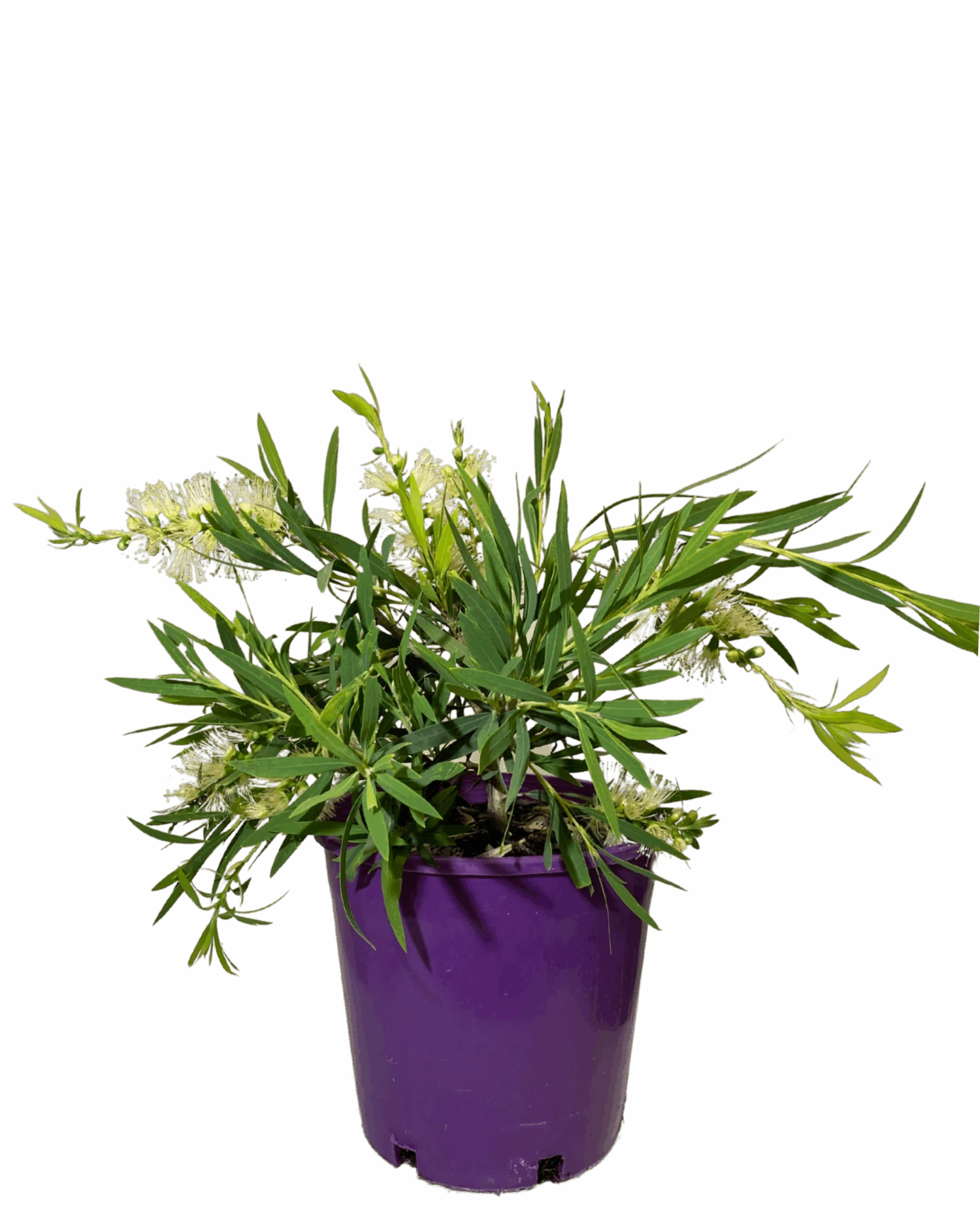 Unlike the typical vibrant red or pink bottlebrush flowers, ‘Wilderness White’ boasts beautiful, creamy white flower spikes. This coloration adds a touch of sophistication and versatility to its ornamental appeal.