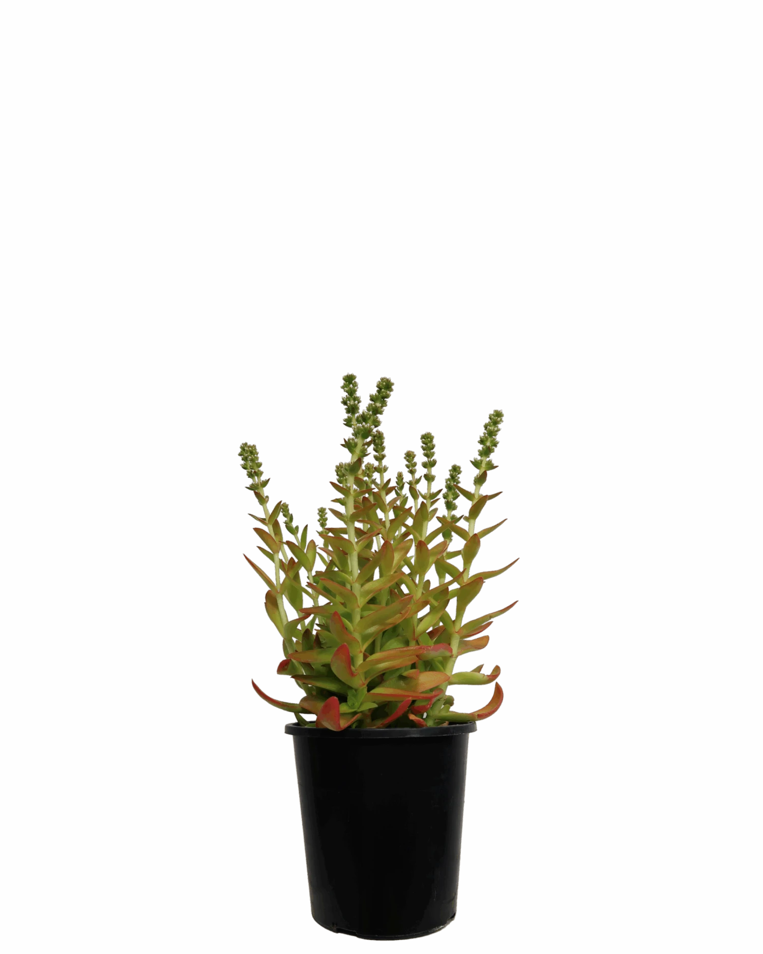 Famous for their spectacular colour, Crassula Campfire starts off a very pale shade of green to lightish yellow, but as they spend more time in bright sunlight, they change colour. They will gradually move through different shades, going from green or yellow to pale pink, brighter pink, and eventually will be bright red. They need to be kept in the sun for as long as possible in order to retain their brilliant colour.