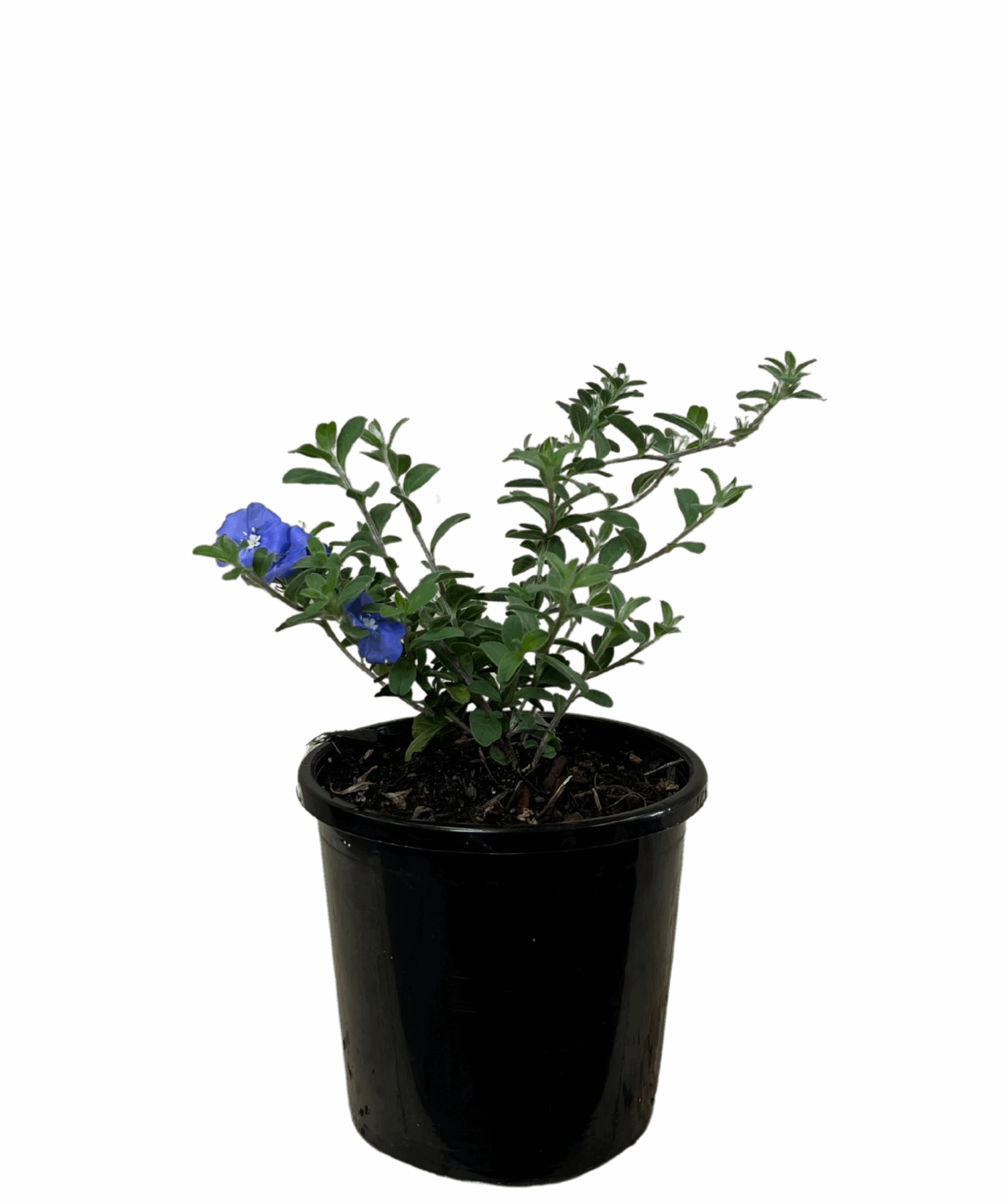 Evolvulus Blue My Mind is a dwarf perennial with beautiful deep sky blue flowers and silver-green foliage. It loves hot weather, performing best in full sun, and is drought tolerant once established. An excellent plant for pots, or as a groundcover in landscapes, along paths, paving and borders, or in rockeries. Evolvulus Blue My Mind grows to 30cm height and 60cm width.