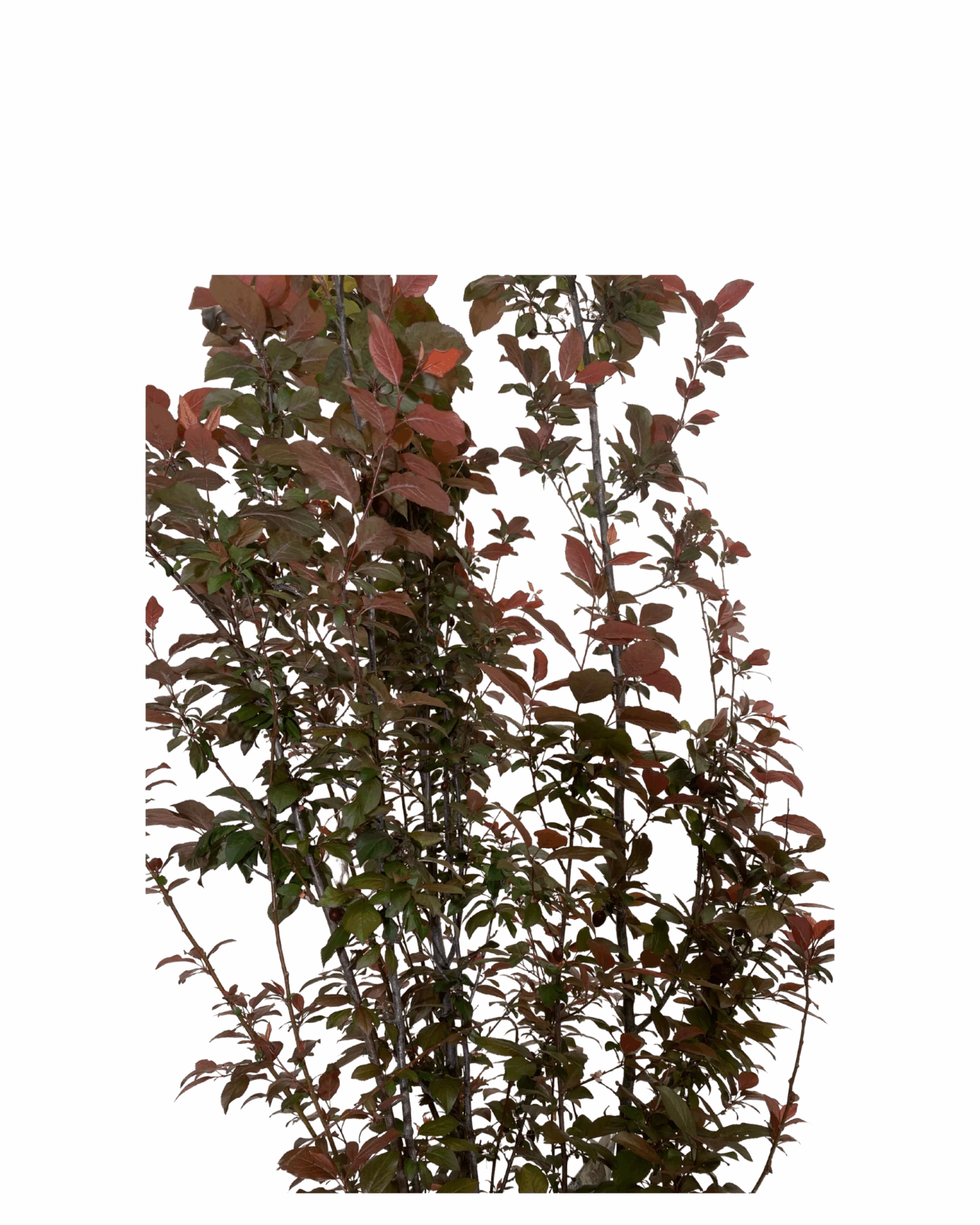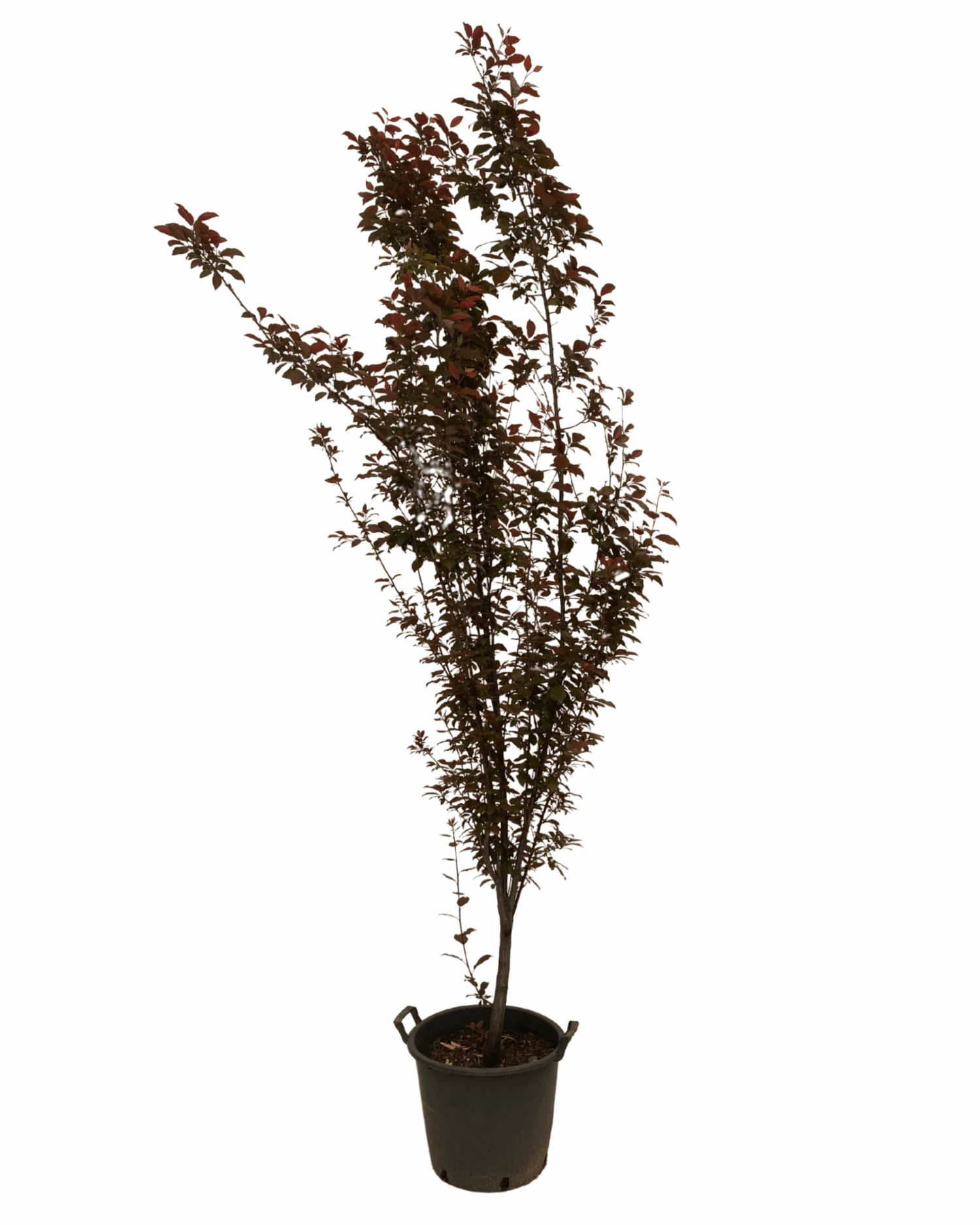 Prunus Cerasifera Nigra, most commonly loved as a “flowering plum”, is a tall and narrow-growing ornamental tree renowned for pale pink flower buds that turn into a profusion of single white blossoms in early Spring. It’s beautiful burgundy new foliage makes a statement to any landscape.